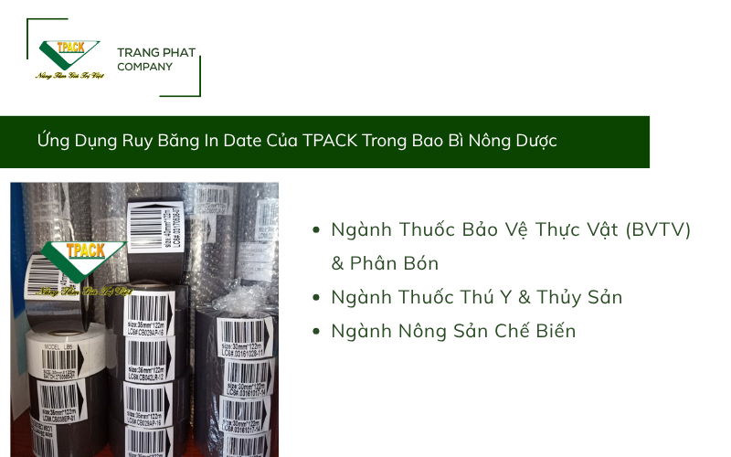 TPACK, với kinh nghiệm nhiều năm trong ngành máy đóng gói và in date, tự hào là nhà cung cấp hàng đầu các loại ruy băng in date chất lượng cao, đáp ứng mọi tiêu chuẩn khắt khe nhất của ngành nông dược, giúp doanh nghiệp nâng cao chất lượng sản phẩm và uy tín thương hiệu.