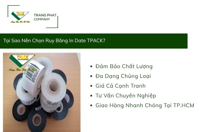 Đảm Bảo Chất Lượng: TPACK cam kết cung cấp ruy băng in date chính hãng, được sản xuất theo tiêu chuẩn cao, đảm bảo chất lượng in ấn tốt nhất.
