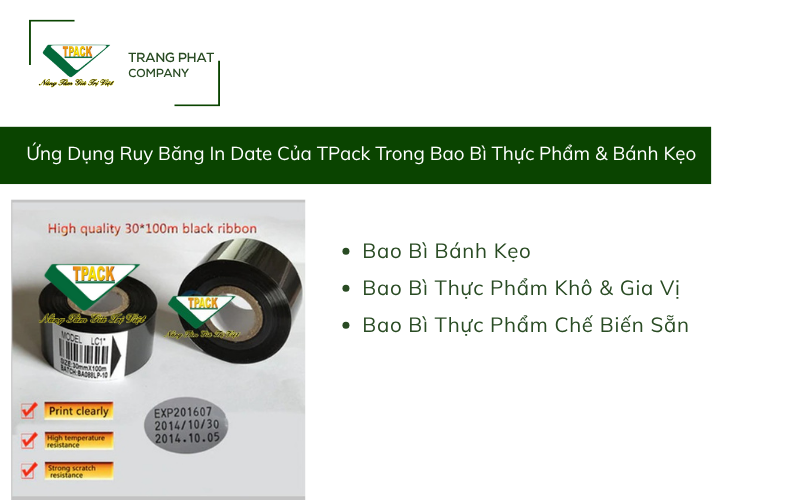 Chất Lượng Đảm Bảo: TPack cam kết cung cấp ruy băng in date chính hãng, được sản xuất theo tiêu chuẩn cao, đảm bảo chất lượng in ấn tốt nhất.